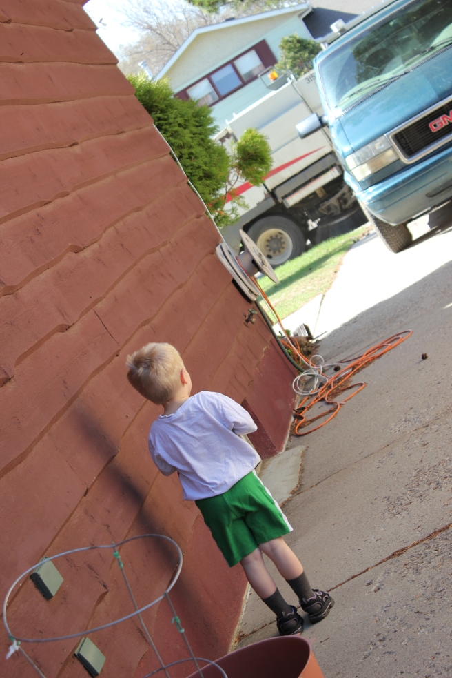 The street sweeper and cleaner went by and he screamed “OH BIG TRACTOR for me, for me!!” We had to stand and watch every time it went by.