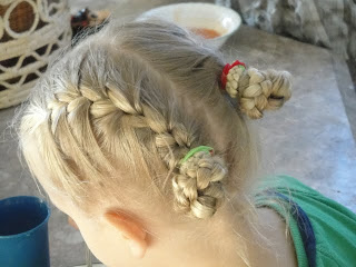 Eldest Damsel has a whole lot of hair now. She likes it down but this mama can’t handle it looking scruffy or flopping in her face so I am forever looking for new things to do with her hair that we both like. French braids have been the big deal of late. We are trying them in different ways and even Little Woman has got involved. Now Little Woman is another story, she LOVES getting her hair done. This girl told me when she grows up she wants to be a doctor so she can do peoples hair. I explained that wasn’t what doctors do. She informed me she wanted to do that badly and I let her know she for sure could but they are called hair stylists, not doctors. She sat so nicely for me as I put her first french braids in. We might not do it again soon as her hair is a little short for it yet and when I saw tears in her eyes over it I just couldn’t put her through that again.