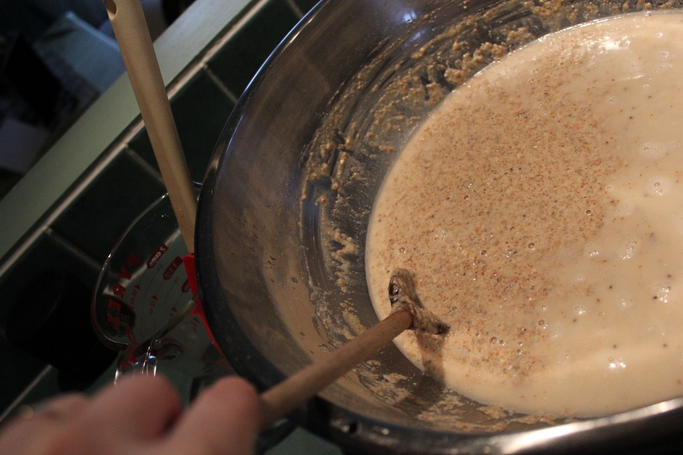 3. While the squash is still hot mix the broth and milk into the squash.