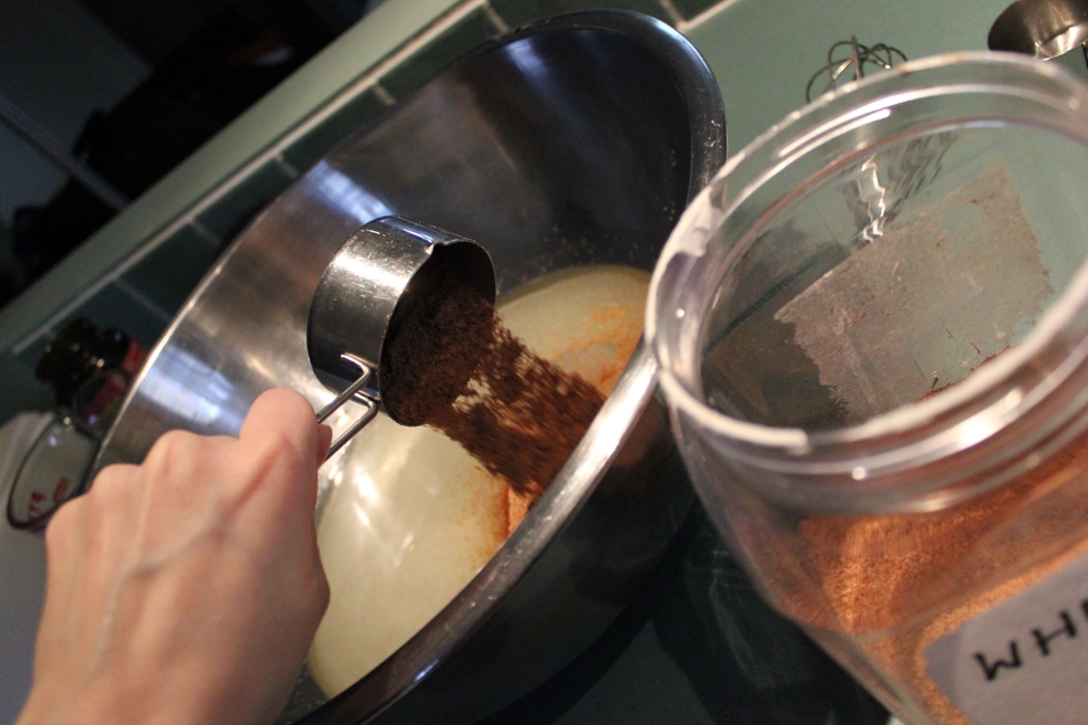 3. Oil of choice is added and today it is grape-seed.  Often I add a mix of grape-seed and olive oil but not on a tired kinda day like today.